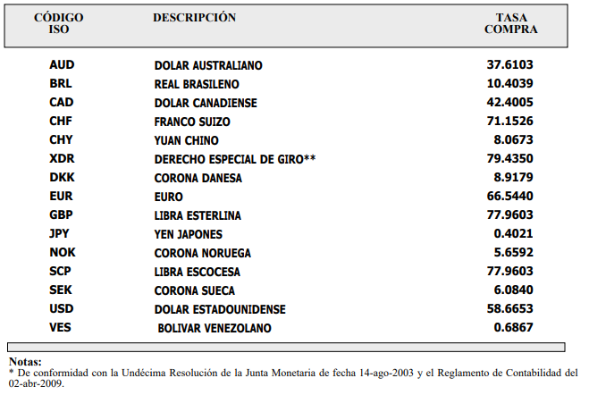 El Banco Central también ha proporcionado los tipos de cambio para otras monedas, aunque no se han especificado detalles adicionales en la fuente consultada.