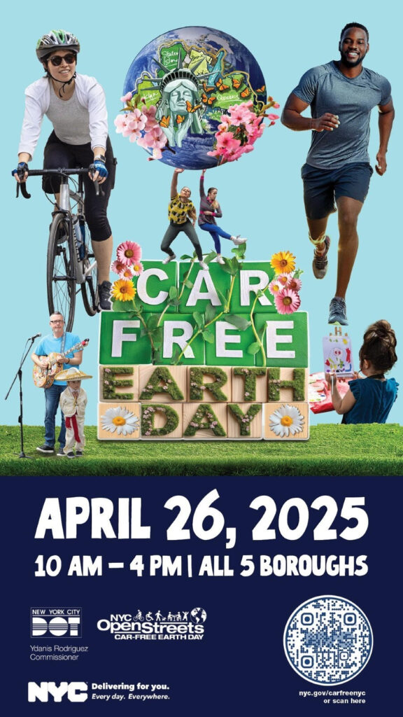 “El espacio público de Nueva York se vuelve más atractivo cada año: plazas vibrantes con música y arte, calles animadas con restaurantes al aire libre y parques bien cuidados, repletos de árboles y plantas. No hay mejor manera de explorarlo que caminando o en bicicleta para disfrutarlo al máximo”, dijo el vicealcalde Jeff Roth. “Nuestro espacio público es lo mejor de nuestra ciudad; este Día de la Tierra Sin Autos es un excelente recordatorio para disfrutarlo de forma sostenible”.